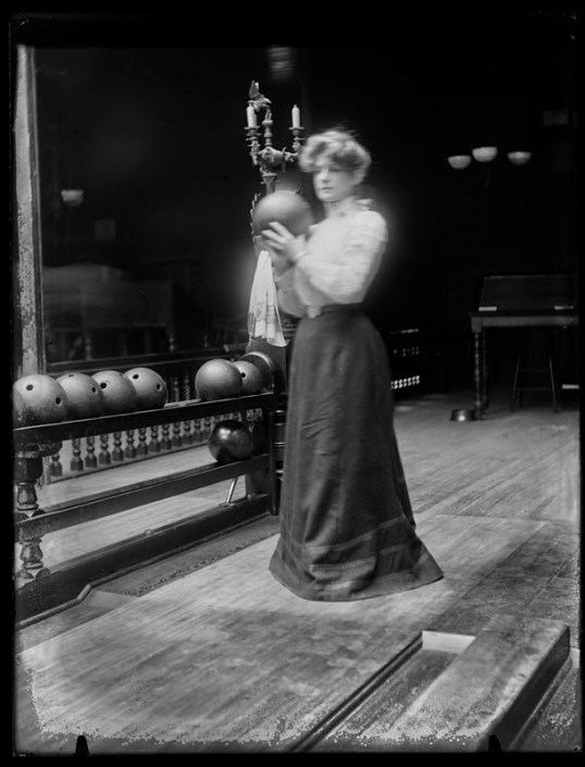 Woman bowling, around 1900