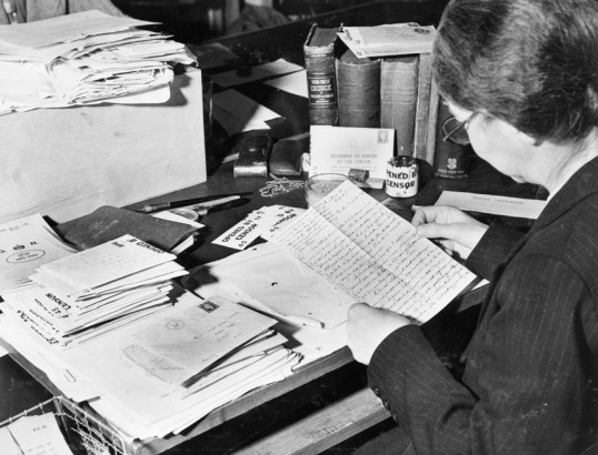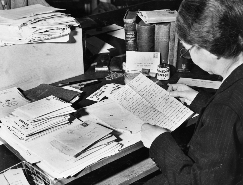 Postal and Telegraph Censorship Department worker checks the content of a letter”.