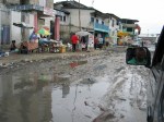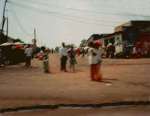 Drove into one of the real backwater quarters of Kinshasa. With the four-wheel drive, we drove over roads that would have made Indiana Jones quail in terror. Everywhere: mud, mud, mud, garbage, and more mud, mosquito havens in road ruts the size of canyons, absolute squalor everywhere. It was like something out of a bad dream. Hordes of little boys running along the side of the car shouting “White man!” in their native language, big tubs of fufu (manioc powder) for sale everywhere, chickens and ducks roaming the streets, and in the midst of all the wretchedness, people buying and selling, trading and walking, bartering and dickering, visiting and playing, incredible disorder.