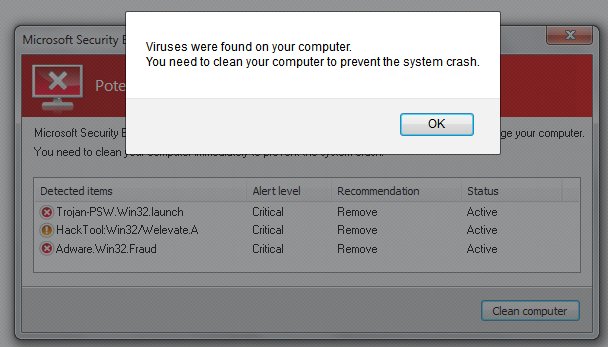 Again, there’s that “to prevent the system crash.” Microsoft may be guilty of useless error messages and worthless help files, but at least they use correct English. Hovering my mouse over the “Clean Computer” button showed a redirect to some alphabet-soup URL, meaning that anyone who clicks that button will be redirected to a site which will load the victim’s computer up with trojans, viruses and malware, oh my. The last insult is that the warning crippled the “Back” button in Firefox, so I had to close it out and restart to get off the page.