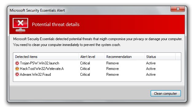 Since I had recently switched from AVG Free to Microsoft Security Essentials (it seems to work just as well, and doesn’t consume anywhere near as much CPU overhead, just for the record), it caught my attention. However, the strange English also caught my attention.