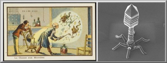 On the hunt for microbes. The image on the right is a electron micrograph of the T4 bacteriophage virus, which for all the world looks like a Lunar Excursion Module.