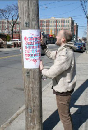 Cardon Webb makes the world a little more beautiful, at the same time rendering quiet service to people in need of publicity. He finds ads stapled to phone poles or other similar places, takes them home, and replaces them with eye-catching new versions. Visit his project at Cardon Copy.