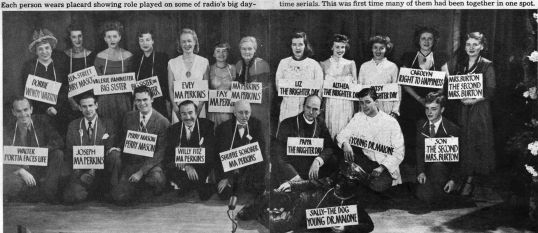 Radio stars at a “Ma Perkins” party. Brighter Day cast on the right.