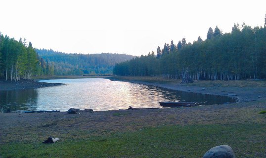 We stopped at Box Lake (more of a puddle, really – the Goodwoman of the House is from Maine, and she knows what real lakes look like). Had dinner on some rocks while enjoying the view. You can see how low the water level is, the drought is affecting all of our reservoirs.