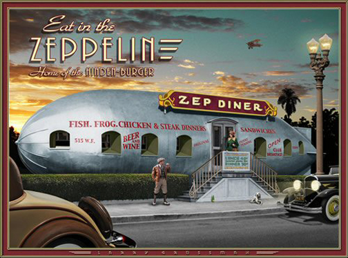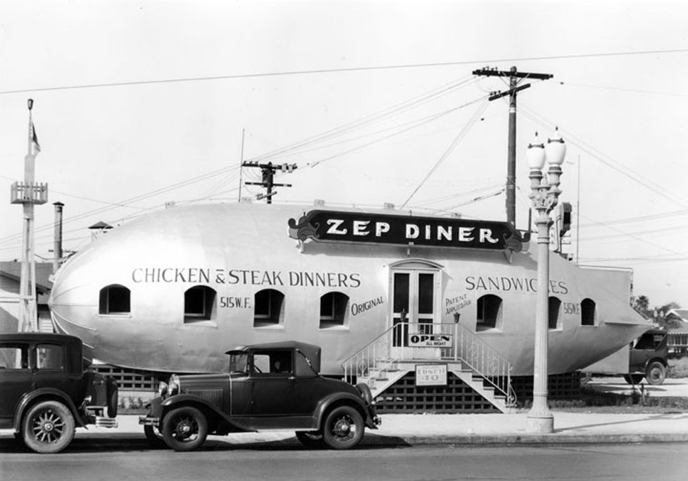 The Zep Diner was located at 515 W. Florence Avenue in Los Angeles near Figueroa. The Zep was open “all night” and was the “Home of the Hinden Burger”.