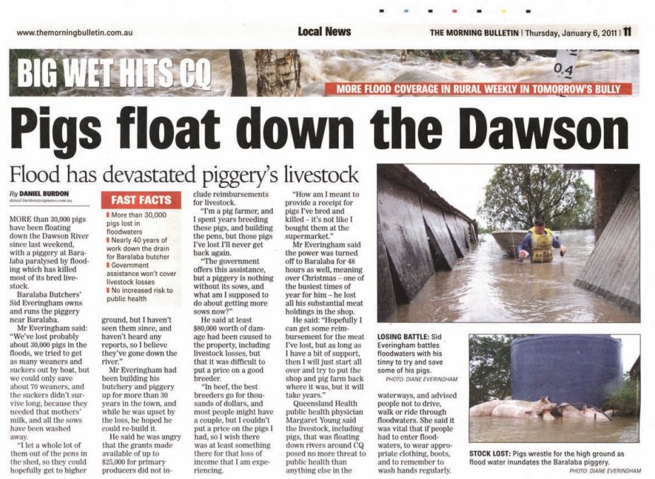 fist   Notice the article on Page 11 – 30,000 pigs swept away in flood.