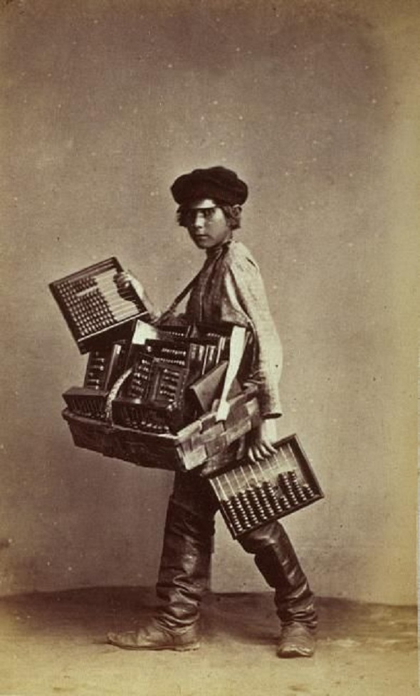 Russian Abacus Seller, 1860 Posted on April 3, 2013 by The Old Wolf Russian boy in St. Petersburg selling abaci. 1860. Found at History of Things. Share this: Share on X (Opens in new window) X Share on Facebook (Opens in new window) Facebook Like Loading... Related