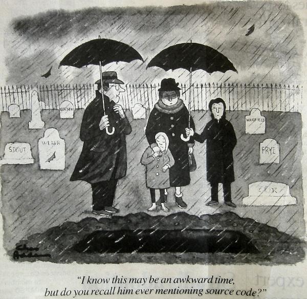 On that note, a bit of history. Back in 1984, the company I joined was running on Wang OIS hardware, at one time the foremost word processing system available in the business world. Their famous V2 editor, designed in tight assembly code to run in 32K of workspace (although most workstations by that time had 64K) was stored in the Wang headquarters in Lowell, Massachussetts, in a tall rack of drives. Source code and backups, all in the same rack. Which got knocked over. Hence no improvements were ever made to the editor; when it came time for Wang to release WP Plus, they basically had to re-write the code from the bottom up, emulating the function of their own editor… and of course it was slower than molasses. Source code is important…