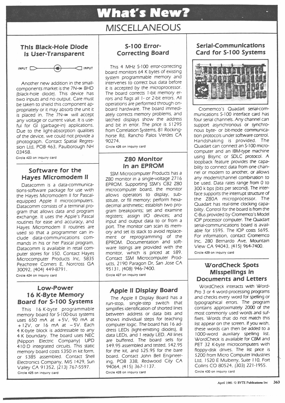 Computer humor goes back a long, long way – Byte Magazine enjoyed throwing an April Fool’s advert into their “What’s New” section. Interesting technology from 1981 – can you spot the joke?