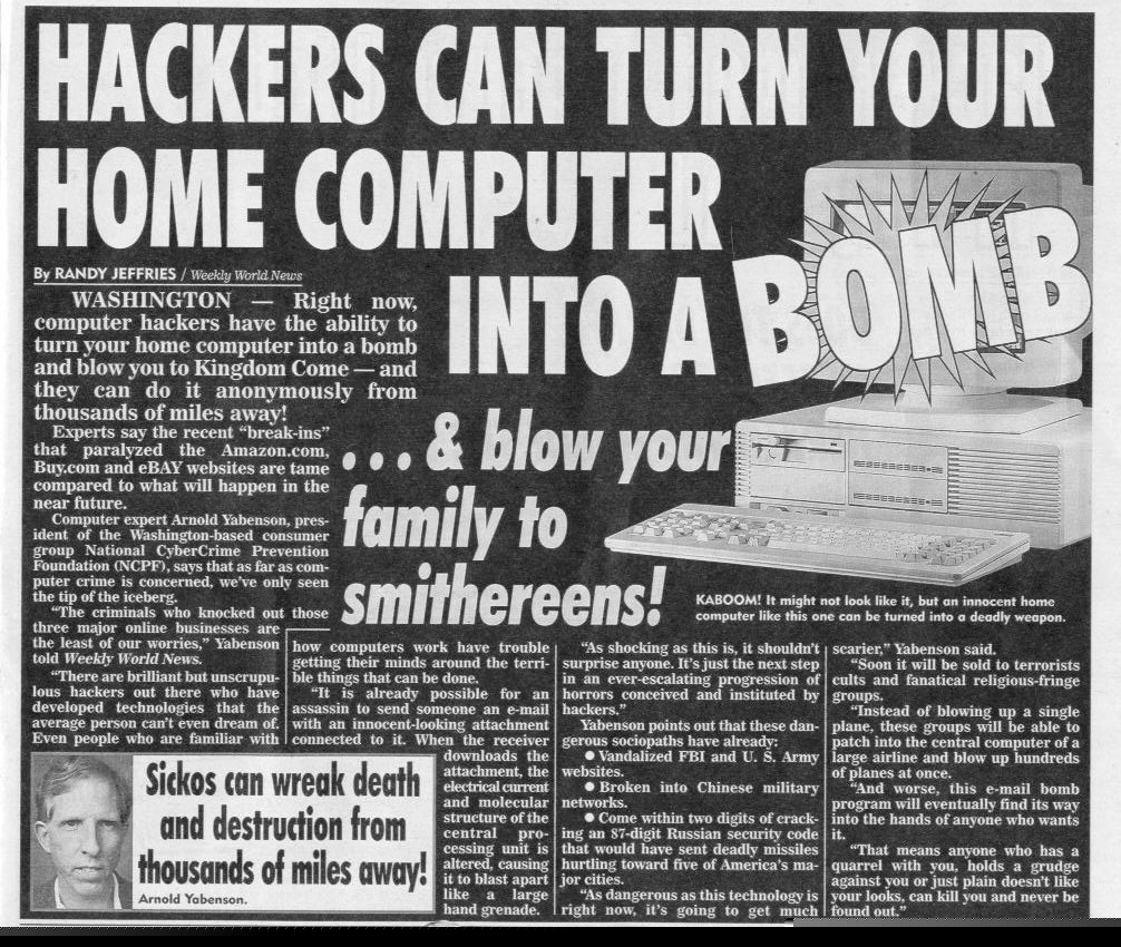 Of course, many people even today are afraid of technology, and the supermarket rags wasted no time exploiting those fears: