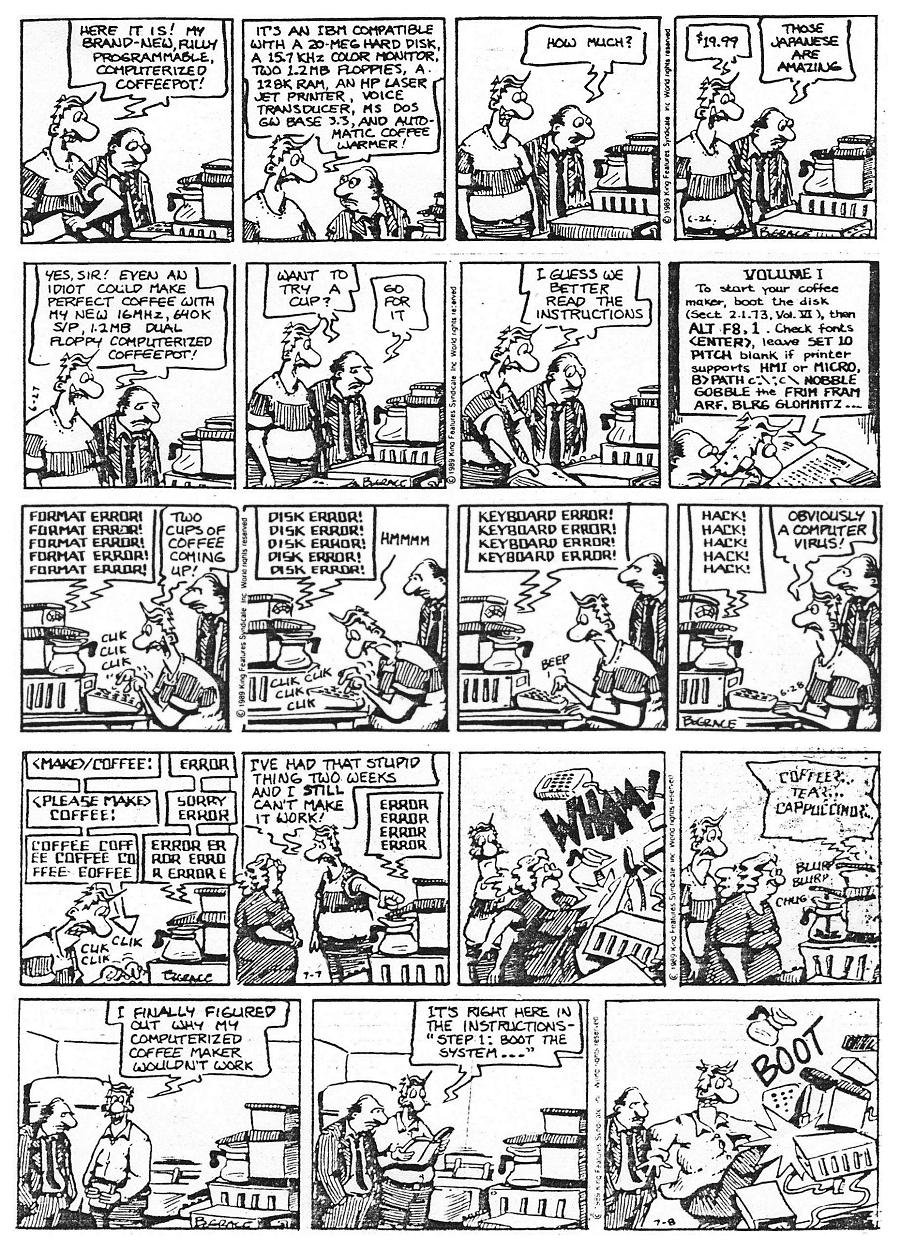 A year earlier, Datamation published a lovely send-up of Poe’s “The Raven” which still resonates with coders of today, even though the architecture has shifted a bit (many versions of this can be found around the internet, but I believe this one is the original).