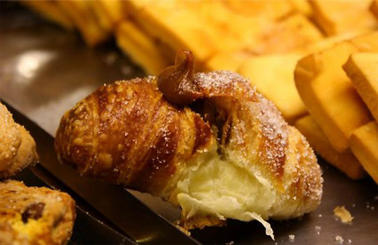 Delicious and simple, stuffed croissants and plenty of coffee served in the sun.