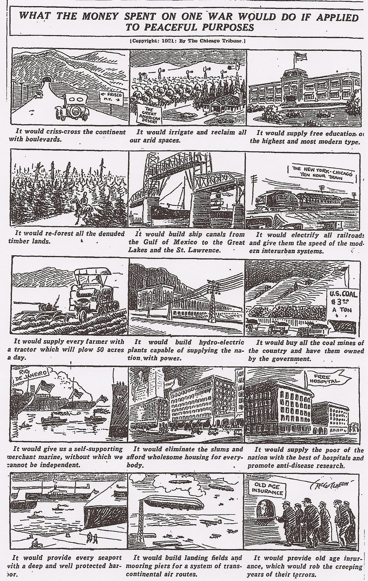The title was “What the money spent on one war would do if applied to peaceful purposes.”