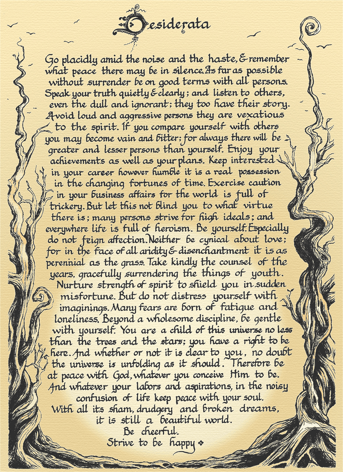 “Go placidly amid the noise and haste, and remember what peace there may be in silence.
