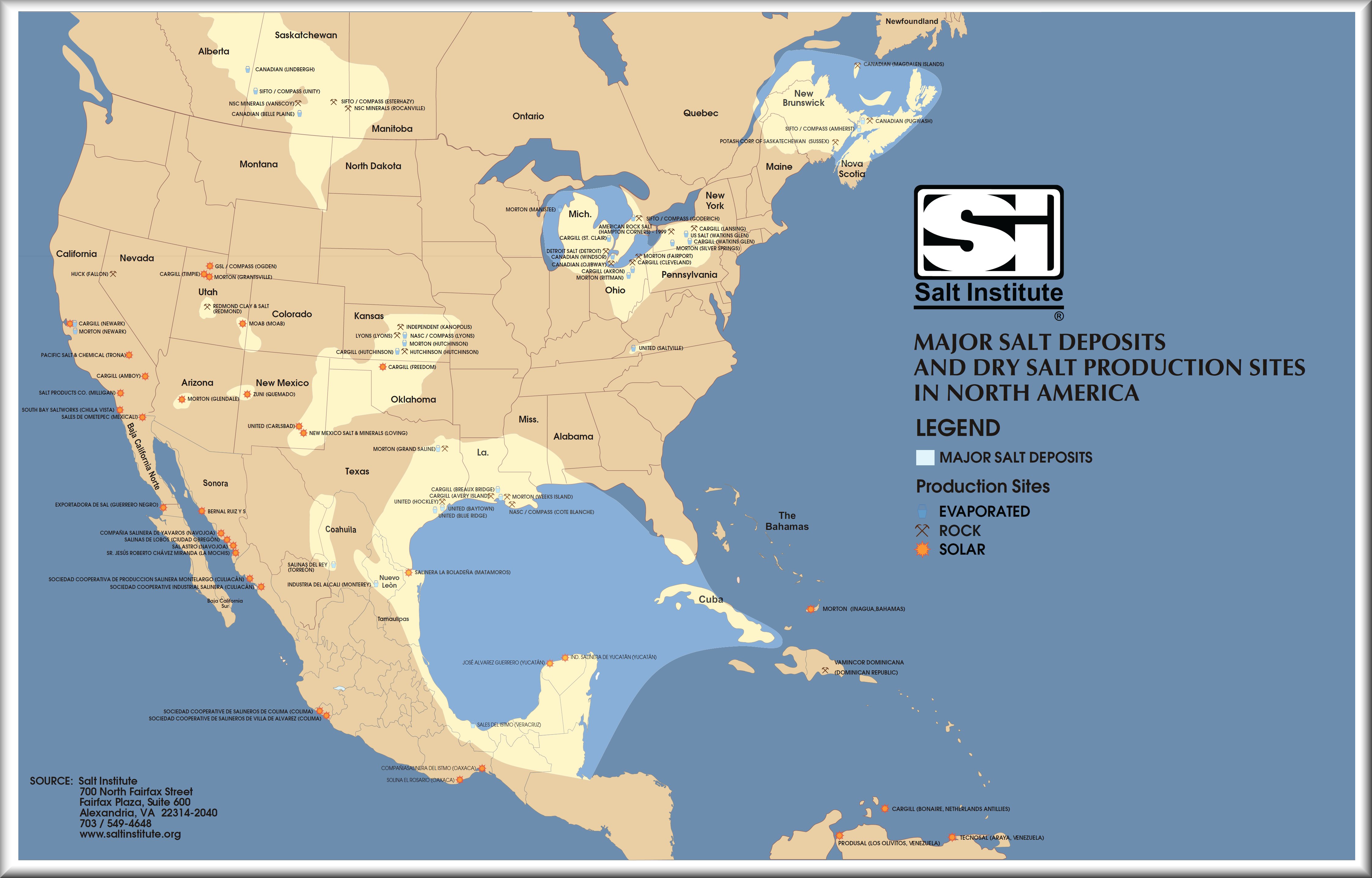 Have you ever wondered where our nation’s salt supplies come from? Thanks to the Salt Institute, here a map of North America’s major salt deposits and production facilities (click for expanded view):