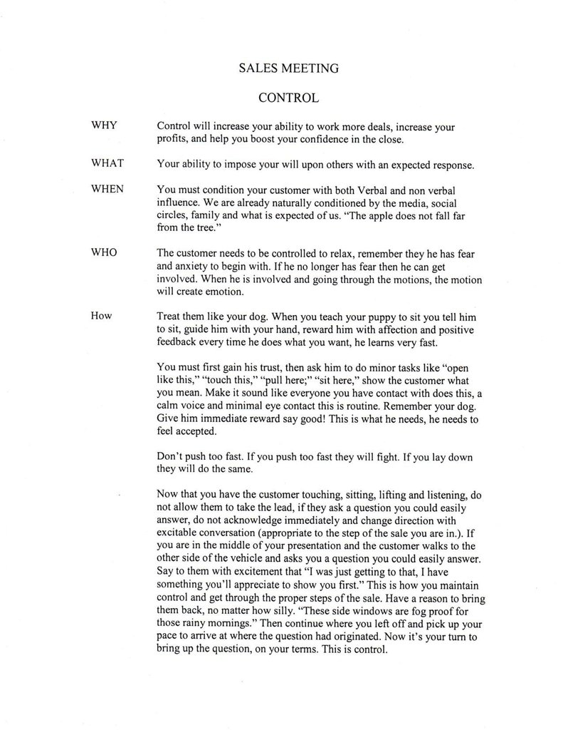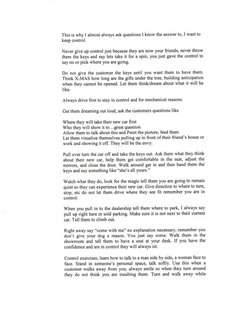Have a look at the following instructions presented at a training meeting for automobile salesmen.