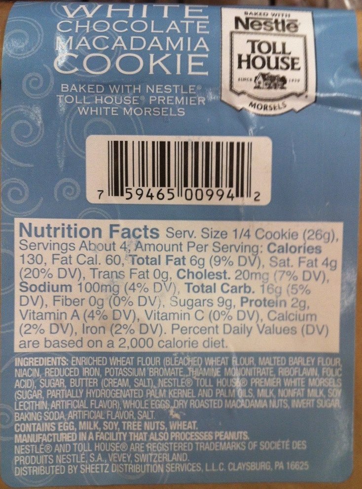 To start with, let’s take a look at this ingredient label for a Nestlé’s Toll House Cookie: