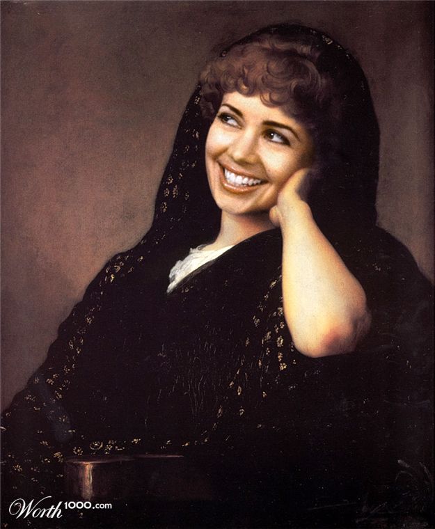 The photoshopped portrait is taken from a detail of this painting by Jean Auguste Dominic Ingres, entitled “Princess Albert de Broglie.”