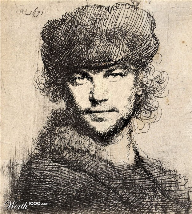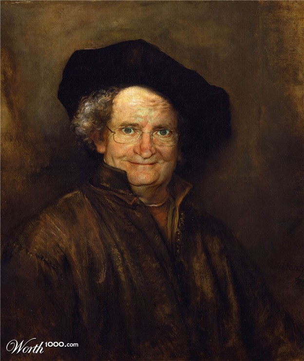 Rembrandt Harmenszoon van Rijn, Self-portrait. This is the same portrait seen above as the template for Sylvester Stallone.