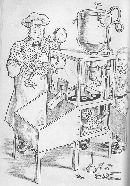 Got some today, along with some other yummy breads and berries and vegetables and a tamale for lunch and mini-doughnuts fried right in front of us in the most wonderful automatic doughnut maker that made me think of Homer Price and his grand adventures, courtesy of Robert McCluskey: