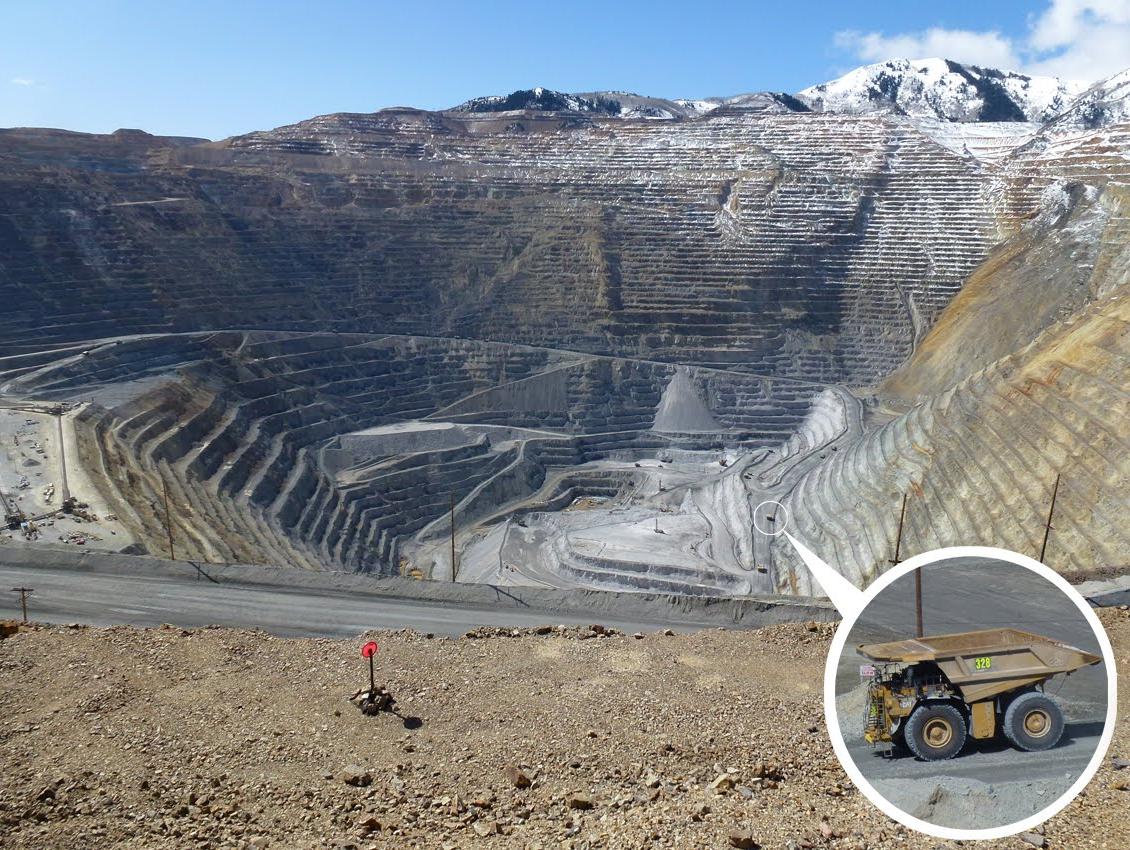 Here’s an image of the Kenecott open-pit copper mine where these devices are in use; the inset shows one of the loaders and its relative size to the pit.