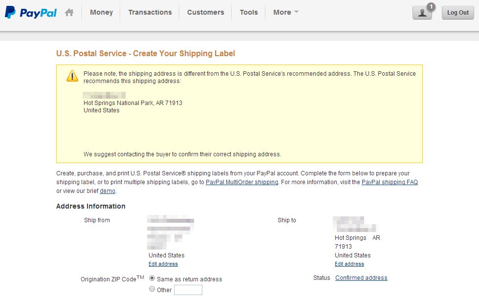 And then you can’t go forward or override the popup until you use the “suggested” address. Notice that the only difference is that the customer entered “Hot Springs,” and the Post Office (xchxxxchhxttt paTOO!) demands “Hot Springs National Park.”