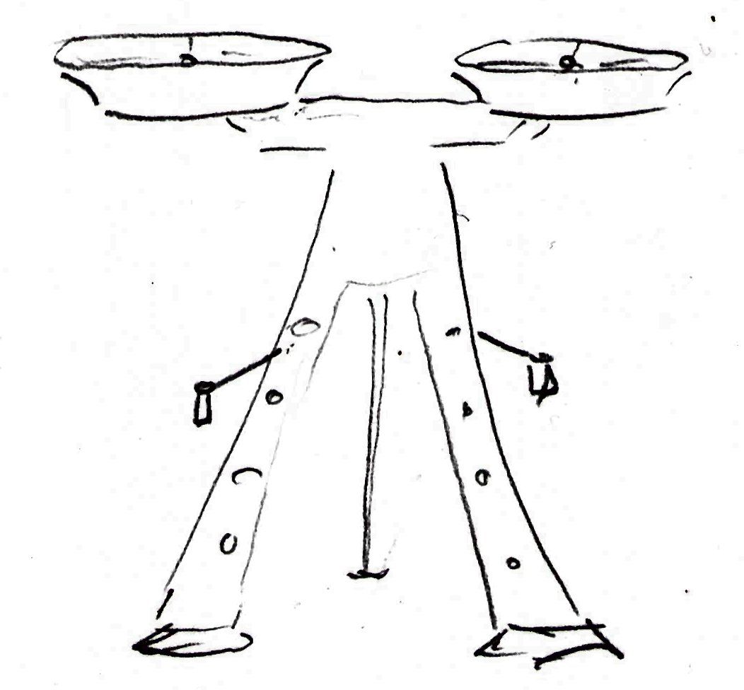 … attached to a sort of one-man tripod. Now I can’t draw worth hqiz, but the basic idea was this: