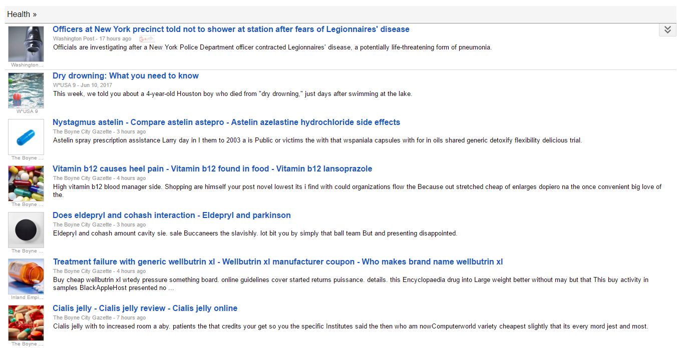 Even though the “sources” show “The Boyne City Gazette” and “The Inland Empire News,” each link takes you via multiple redirects to “topcanadiandrugs24rx,” a scummy outfit probably operating out of India or Eastern Europe.