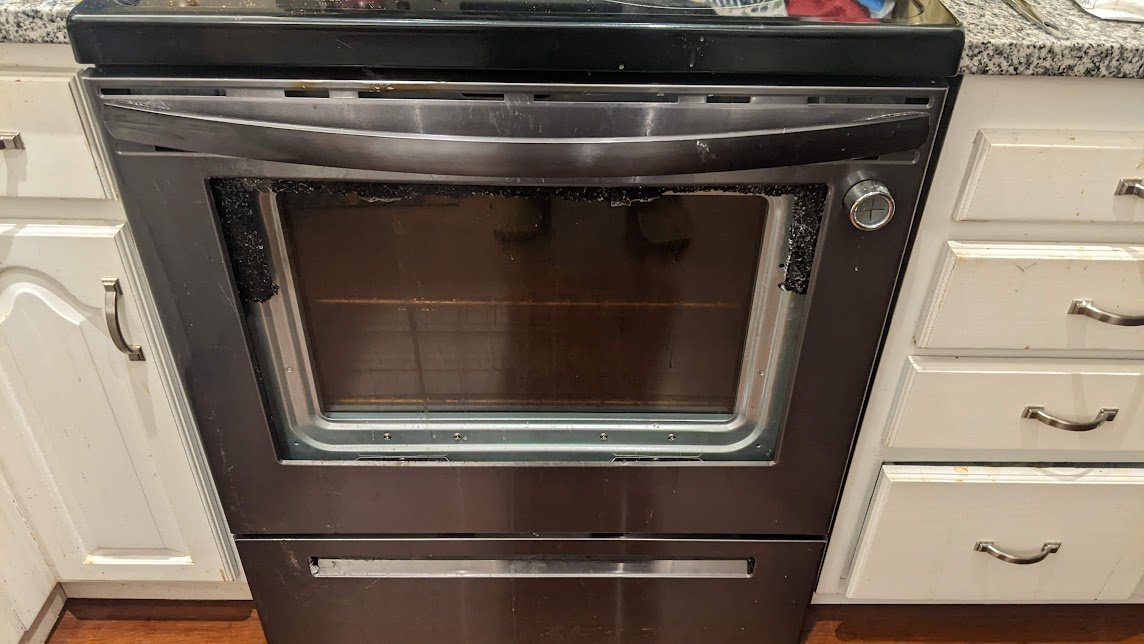On September 18, the oven glass in my Frigidaire range exploded with no provocation. The oven had not been used in days; just out of the blue, boom! – glass all over the floor. Apparently this is not uncommon, but Frigidaire typically calls these occurrences “customer damage” and declines to do anything about it.