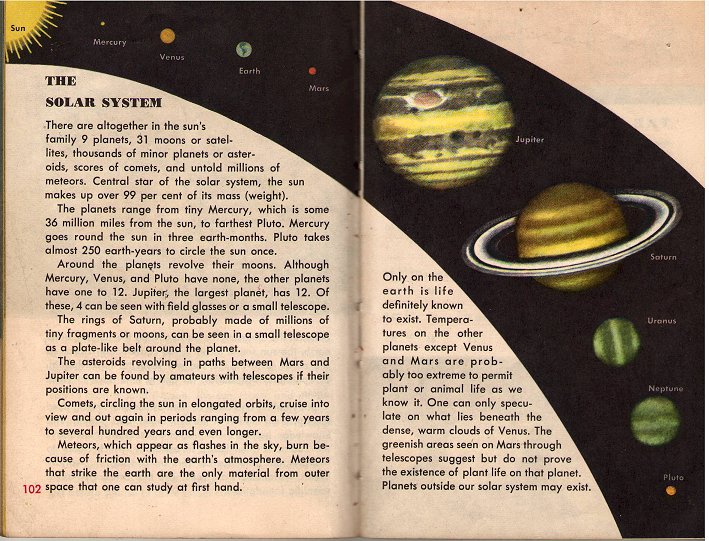 From the collection of Tom Lesser.  I would swear on a stack of waffles that I had one of these; Heaven only knows what happened to it. I was too young at the time to appreciate much astronomy, but nowadays there are some wonderful planetarium and space-exploration programs available online and offline both.