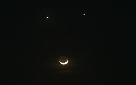 In December of 2008, a beautiful conjunction of Venus, Jupiter, and a crescent moon created a lovely “smile” in the night sky, although depending on where you were in the world, it probably didn’t appear straight-up like this.