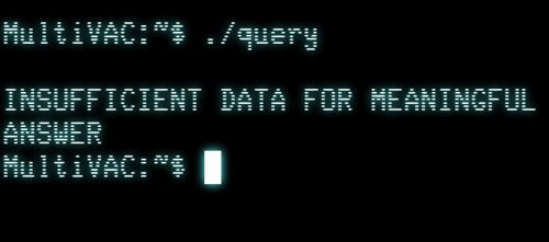 I’ve seen other such productions, equally thought-provoking, and all of them put me in mind of Isaac Asimov’s “The Last Question.” It’s a similar imagination, although somewhat simplified because the concept of black holes would only be posited two years after the story was written, of what happens when entropy reaches its ultimate terminal state, and there is no energy left anywhere in the universe at all. It revolves around humanity’s quest to stop the heat death of the universe, by asking ever-more powerful computers, “How can entropy be reversed?”