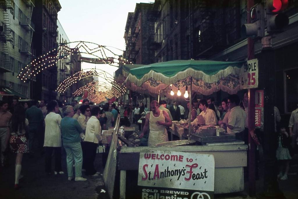 But known to fewer people is the fact that there was a second Festa which took place along Sullivan Street in Greenwich Village during the ’60s: The Feast of St. Anthony of Padua. St. Anthony’s was established in 1859 as the first parish in the United States formed specifically to serve the Italian immigrant community. (Wikipedia)