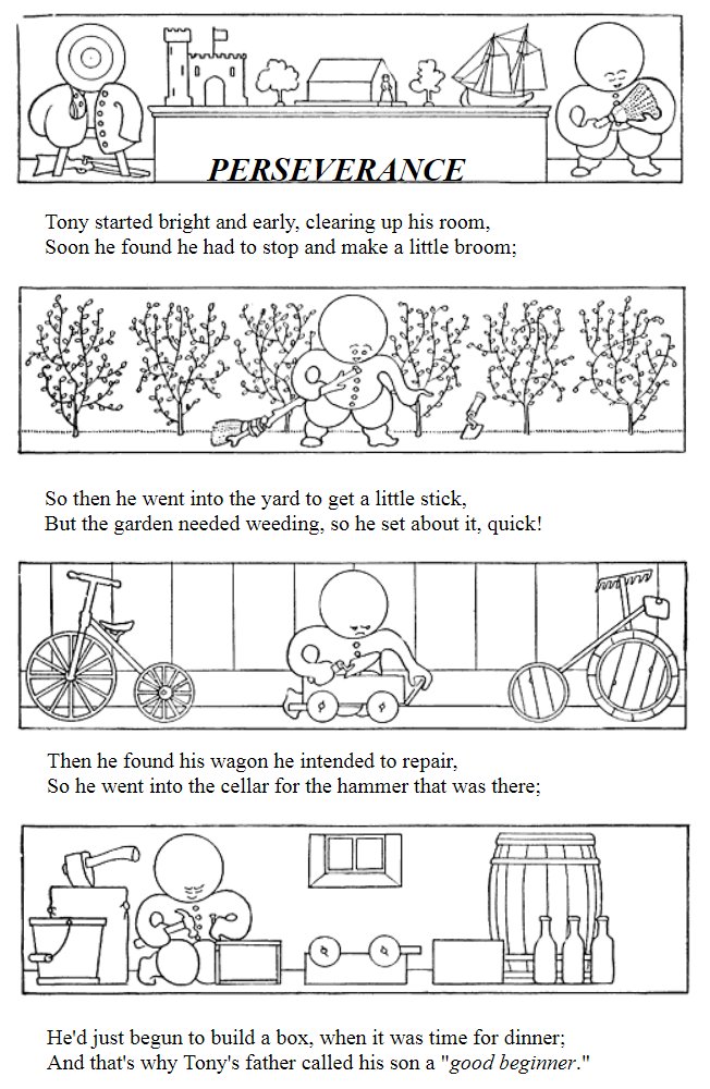 This book was written and illustrated by Gelett Burgess in 1900. People may think that the manners extolled in this wonderful book are stilted and out of date, but I maintain that we would have a much more civil society if these were univerally taught and observed.