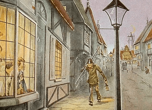 This poem, one of my favorites in A Child’s Garden of Verses, refers to the days when lamplighters would come around the streets of Edinburgh, lighting the gas lamps. As a child, Stevenson was an invalid (hence the reference to “when I am stronger”), and looking out of the window to see the lamplighter would be a bright spot in the lonely child’s day; to be noticed and nodded to would be exceptional.)