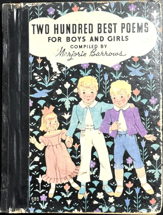 This book is special to me, because – while sadly uncredited, the black-and-white illustrations were done by a great-aunt of mine, Mildred Rogers Dickeman. Here is a post featuring an extract from this book, “Little Orphant Annie.”