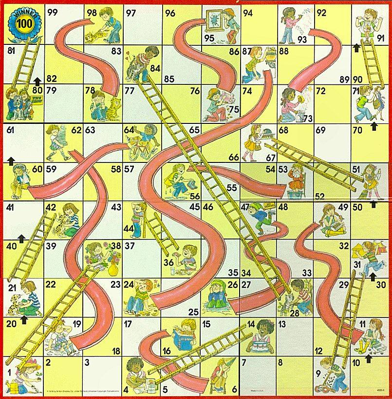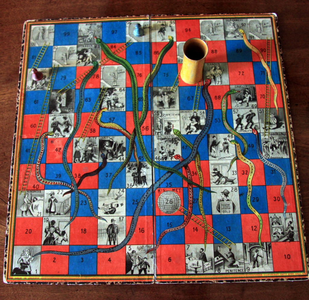 Snakes and ladders (Chutes and Ladders in the USA) is a board game for two or more players regarded today as a worldwide classic] The game originated in ancient India as Moksha Patam¹, and was brought to the United Kingdom in the 1890s.