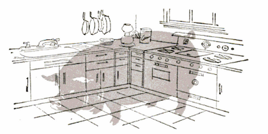 If you have a disposer now, you know why housewives love it. It ends a lot of fuss and muss. It eliminates smells and drippings. It speeds getting meals and cleaning up afterward. It’s self-c1eaning, and stray dogs can’t knock it over. It puts flies, roaches, rats and mice on a starvation diet.