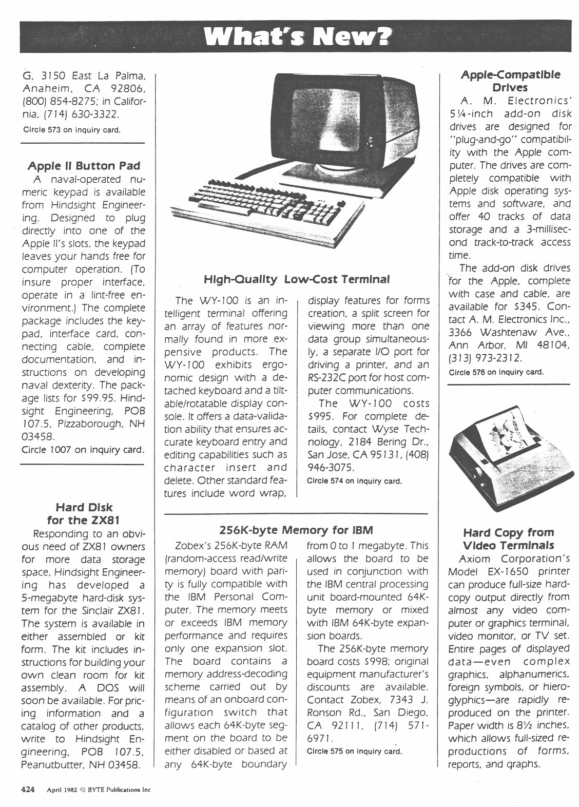 It was traditional for BYTE magazine to include one bogus article in their “What’s New” section each year in the April edition. Here are two years’ worth that I archived in my “what the Hell” file. They’re interesting not only because of the gag, but to see what was actually considered new in those years. Ah, history… see if you can spot the bogus articles.
