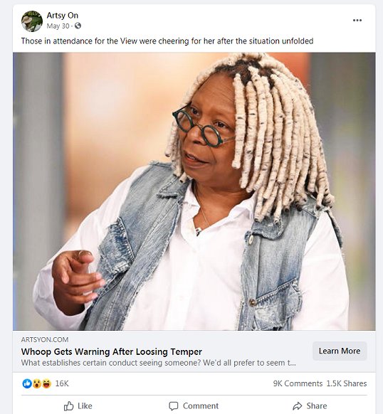 which is a farticle (fake article) implying that Whoopi is endorsing or promoting this garbage called Cheyenne Valley CBD Oil: