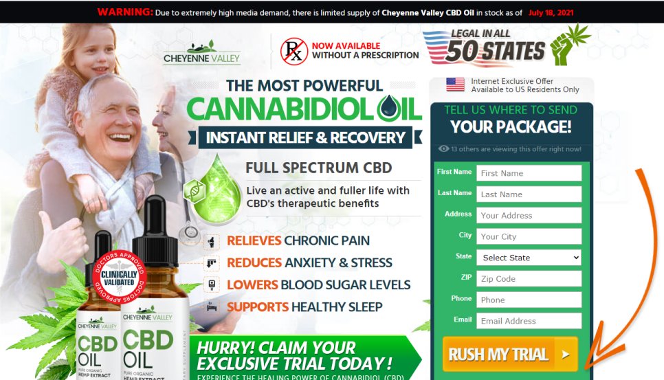 By placing your order today you’ll be shipped a 30 day supply of Cheyenne Valley CBD Oil for only $6.89. This gives you the opportunity to try this remarkable product so you can come to a decision for yourself if this is the right product for you. If you are dissatisfied with the product, you must call 8774388714 within 14 days trial plus 3 days shipping (total of 17 days) from today to cancel your membership and avoid being charged of $99.89, which is the full price of the product. If you are satisfied with the product, you need do nothing else and upon the expiration of the trial period, you will be billed $99.89.The total monthly subscription charge of $99.89 includes shipping and handling for the full cost of the product. Thirty days after your trial period ends and every thirty days thereafter, we will send you a fresh monthly supply at the low price of $99.89 per until you cancel your membership. There’s no obligation and you may cancel your membership at any time by calling 8774388714 or by sending an email to care@buycheyennevalley.com. The trial period begins from the day of ordering the product.
