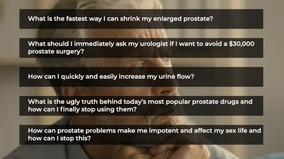 “Research has recently discovered an incredibly effective way to shrink your prostate,” trumpets the landing page. “We don’t know how long this video will be up, the medical industry sure does not like it… watch it now while you can.”