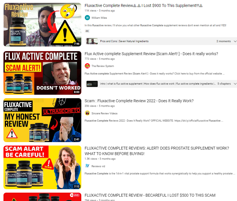 And there are literally pages of these, each posted by affiliate marketers. Each one of these claims to show that FluxActive Complete is a scam, but in the end they recommend that you purchase the product through their affiliate link, hoping to make a commission on the sale.
