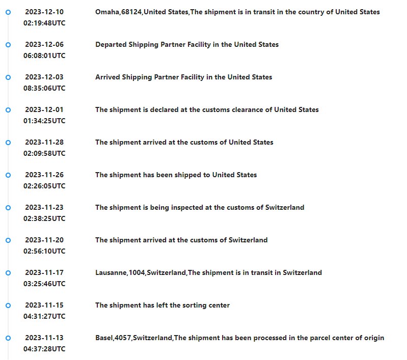 This one of many Amazon listings for the item we ordered, although we bought from a company named “blueorxy” – clearly a randomly-generated name. They’re still out there, and I would trust them as far as I could throw a Steinway piano. As soon as we ordered, we started getting notifications from a supposed tracking company; the notifications ended on December 10, and from then nothing was heard.