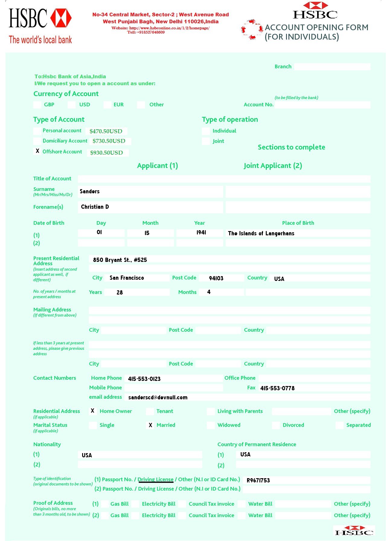 HSBC ACCOUNT OPENING FORM.