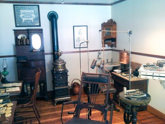 This may be a bit older than the 50s, but the basic setup looked the same as the one Dr. Glick used on me. No high-speed drills here, just that belt-powered grinder, and despite the agony I still refused the Novocaine.