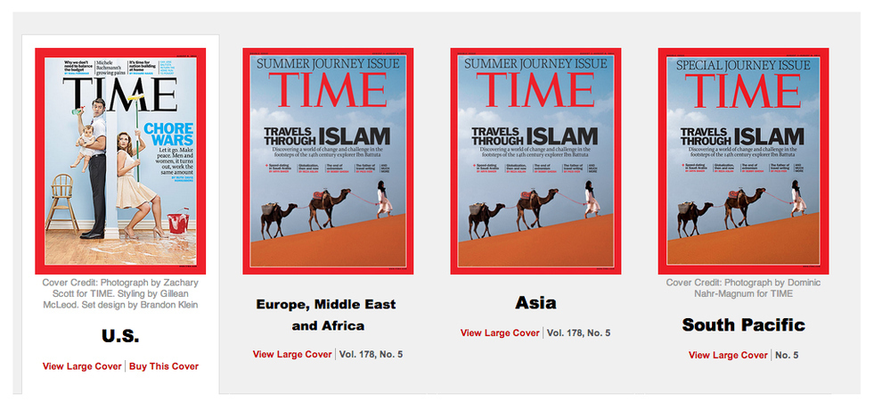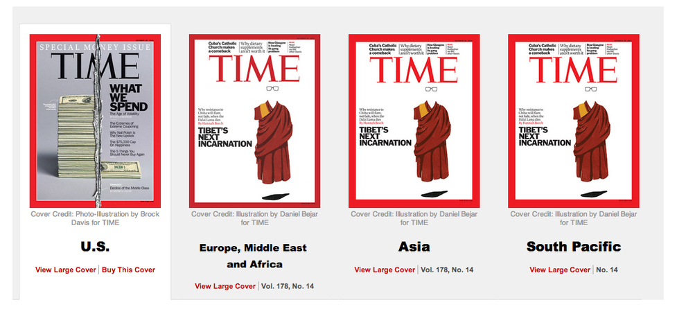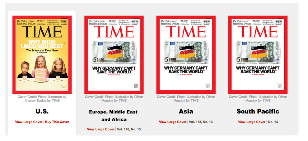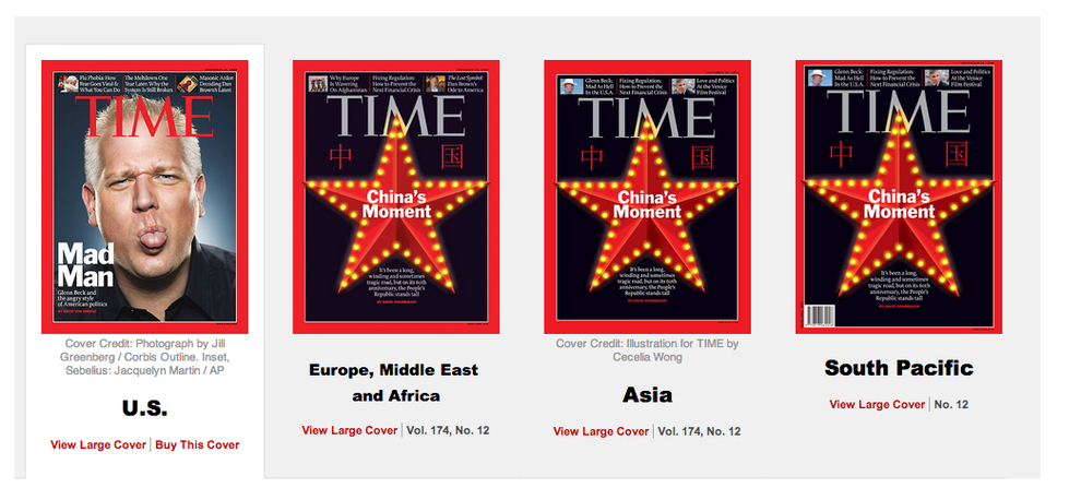 Just have a look at this collection of Time magazine covers from around the world between 2007 and 2013. Consider what Americans think is important, or what will encourage them to plunk down their cash.