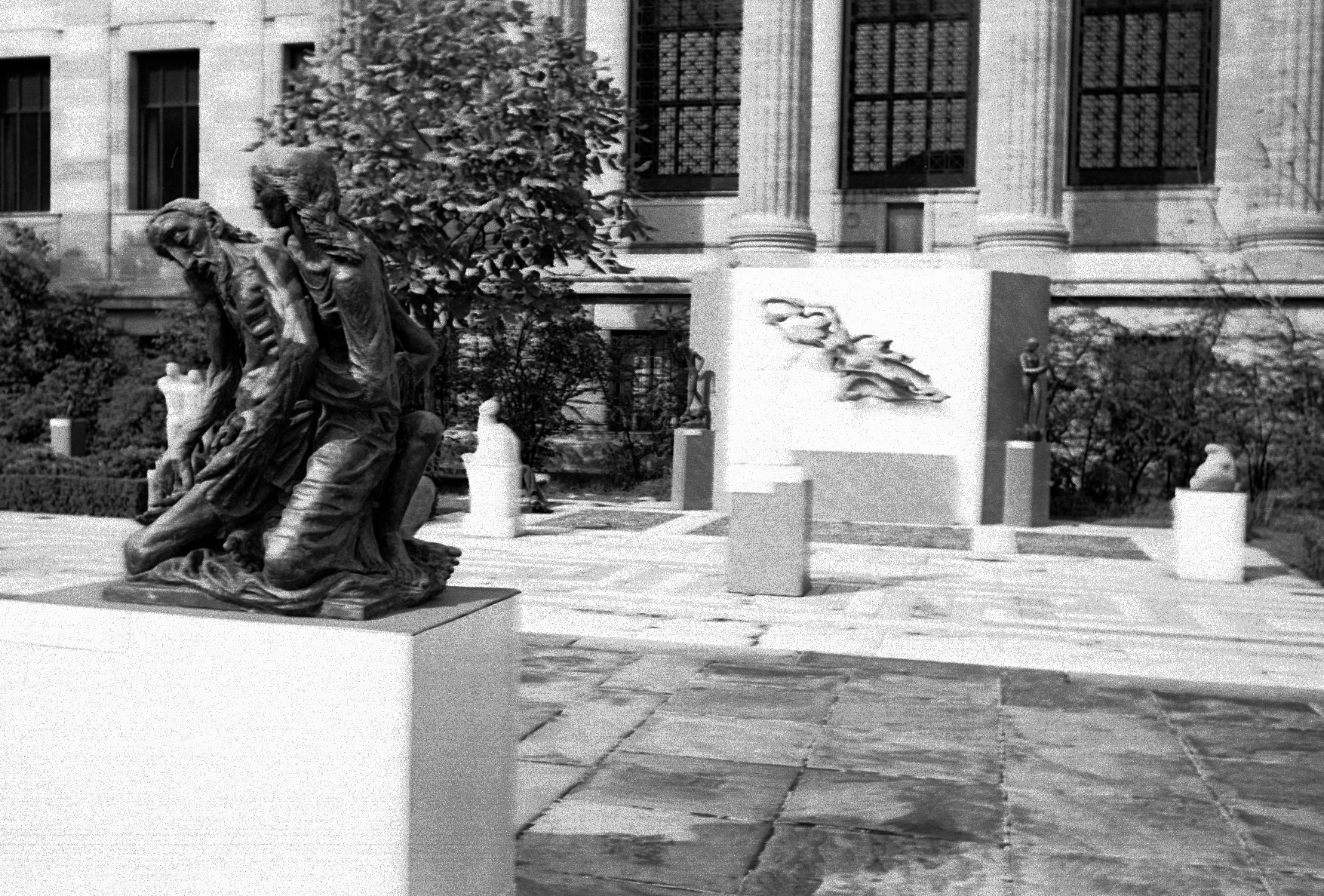 Two relief sculptures on the side of the Fulton County Public Health Department in Atlanta, Georgia.