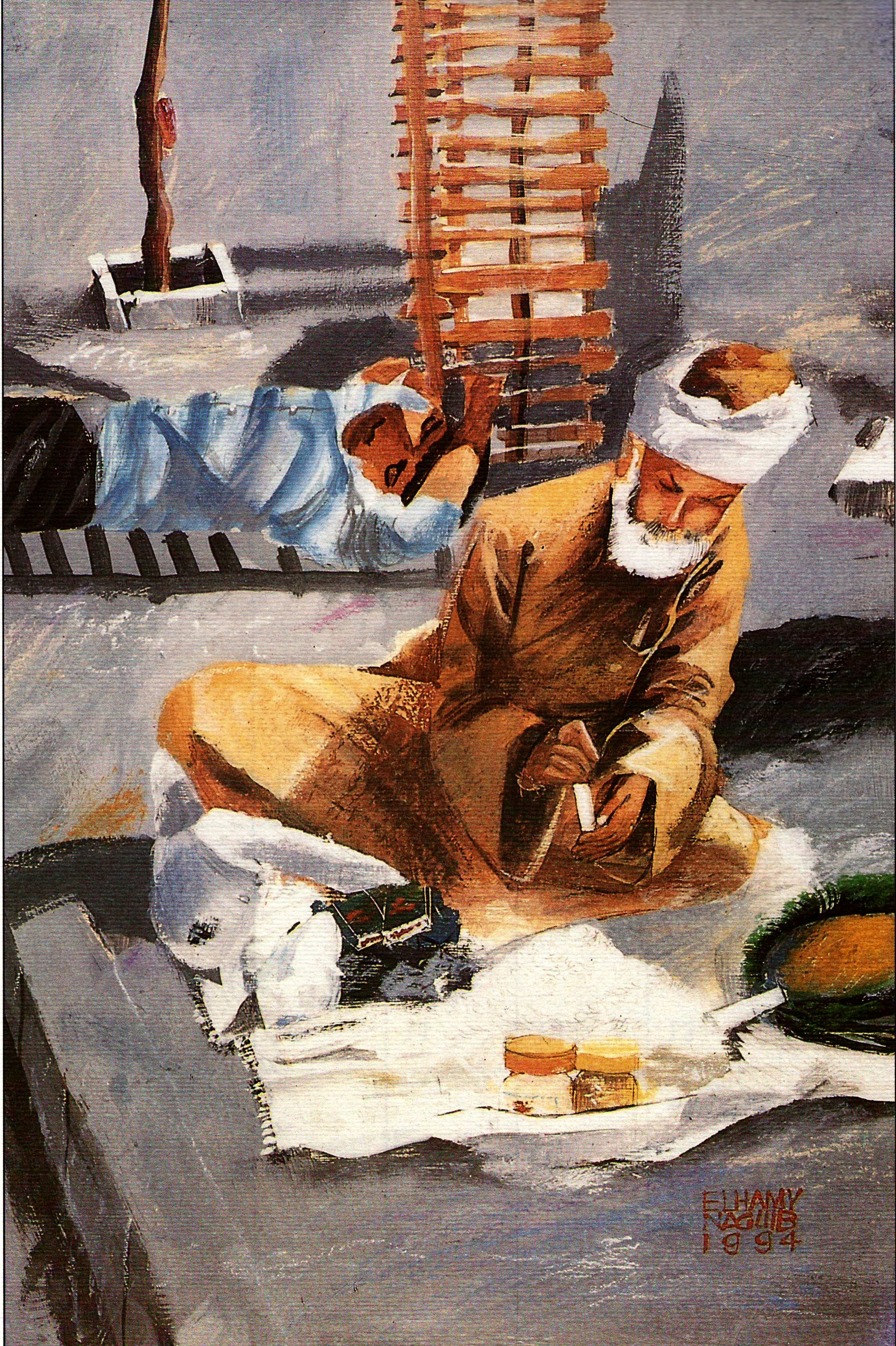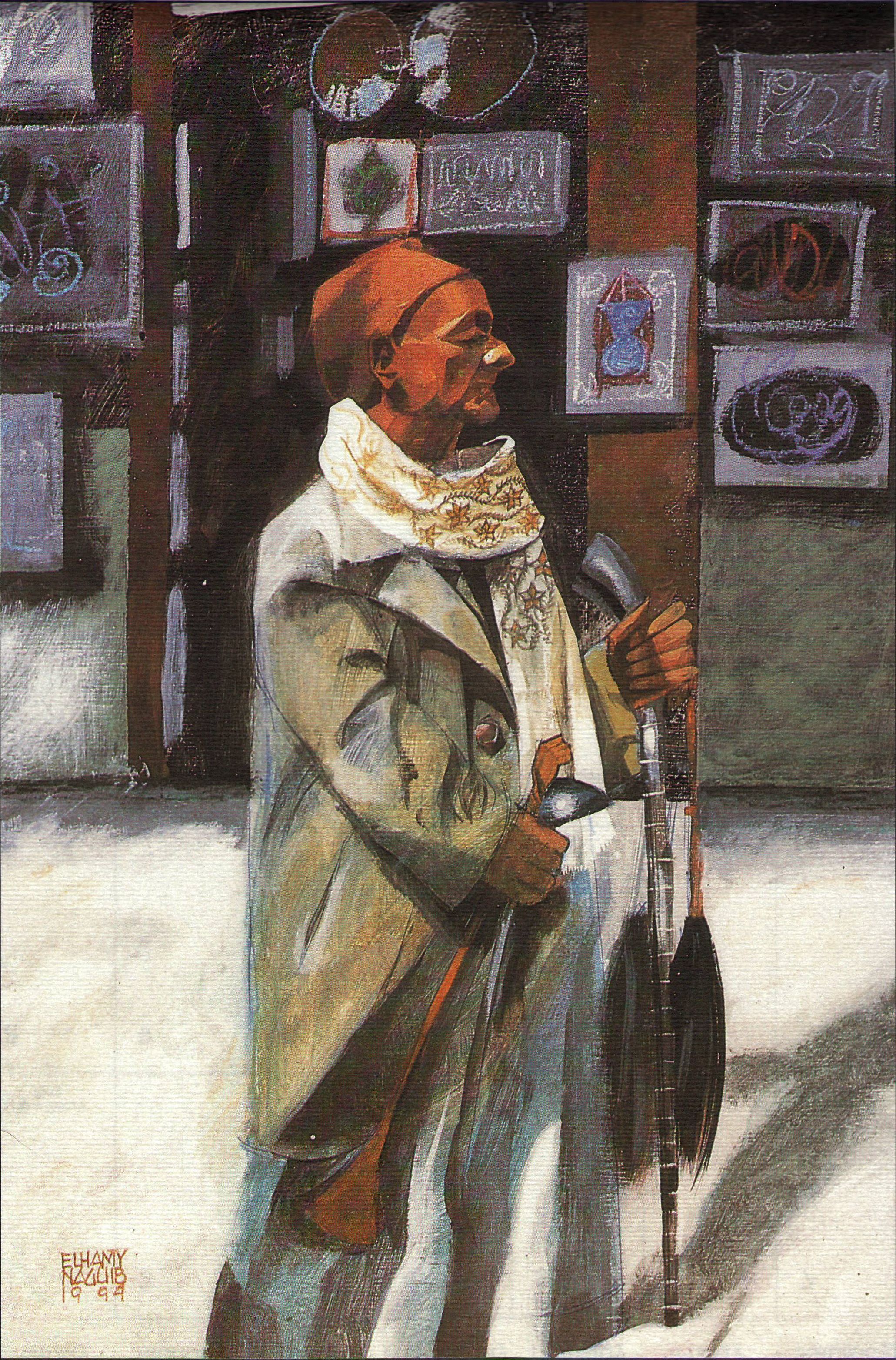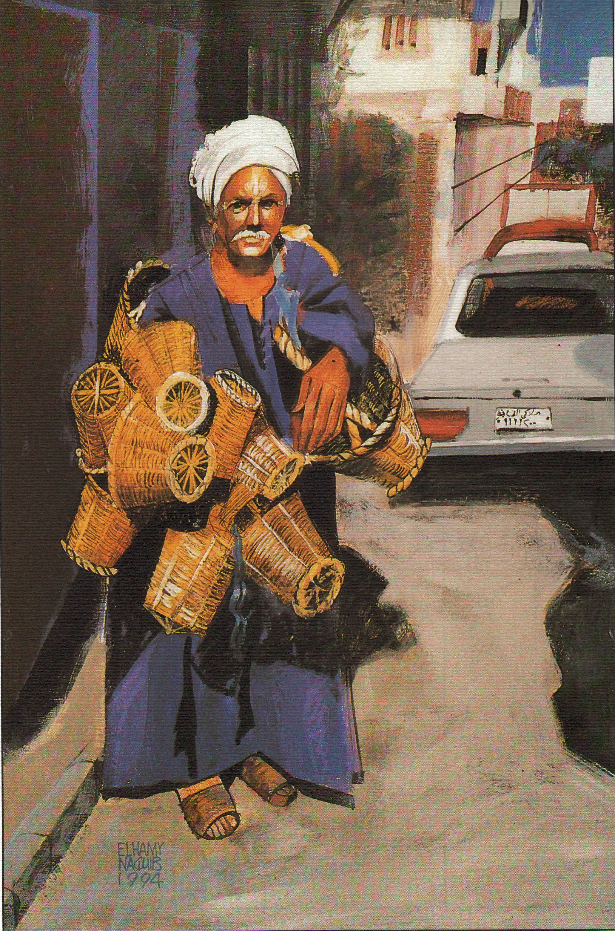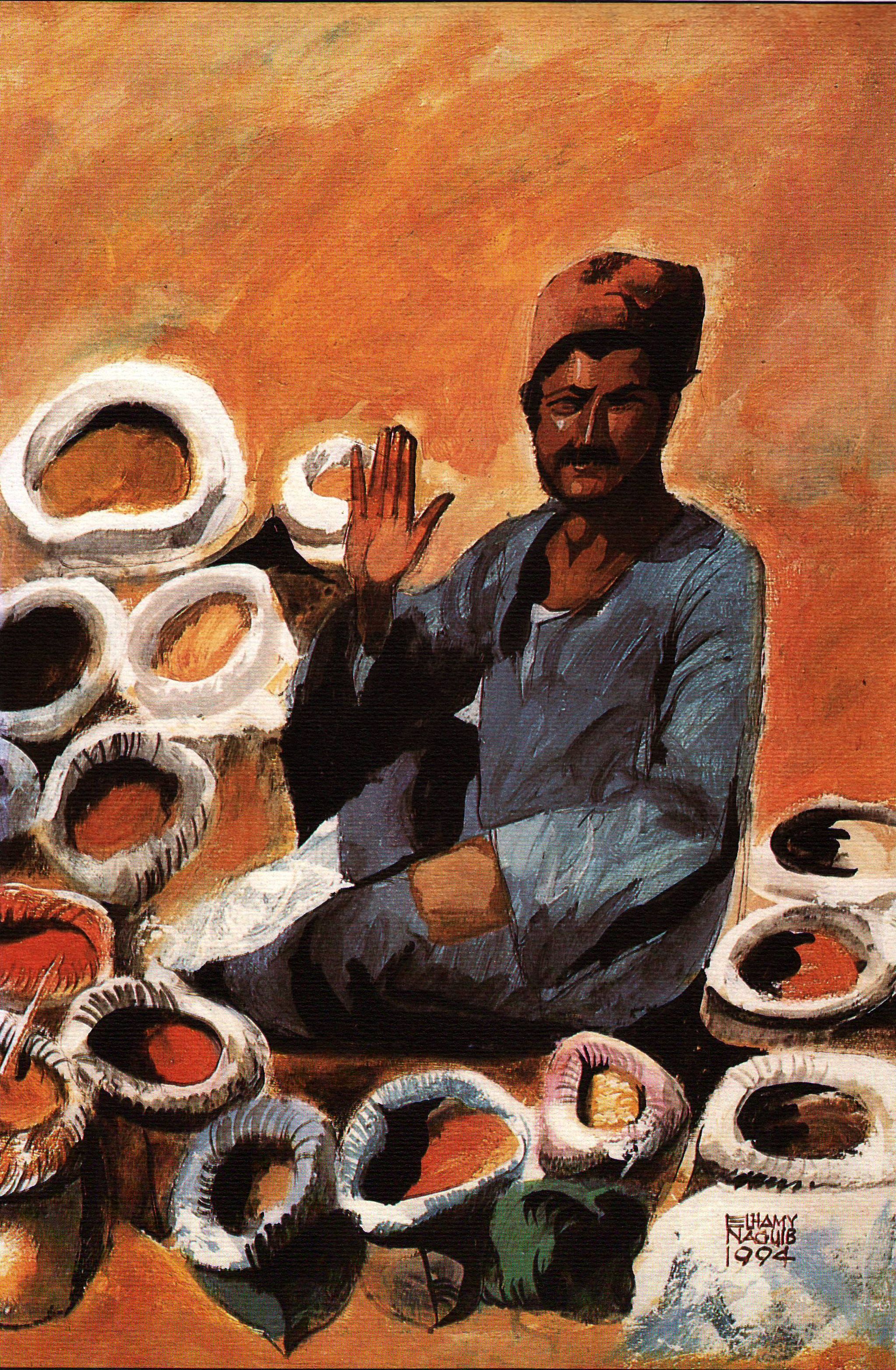 Elhamy worked hard to develop his talent, and has done a wonderful job in an impressionistic way of rendering the nature of Egyptian street scenes. I especially love the faces. They capture the good-hearted nature of the people of Egypt, who – like many of the people of the Middle East – illuminate their country and are not represented by the fanatical, misguided loons who are getting so much media attention these days.